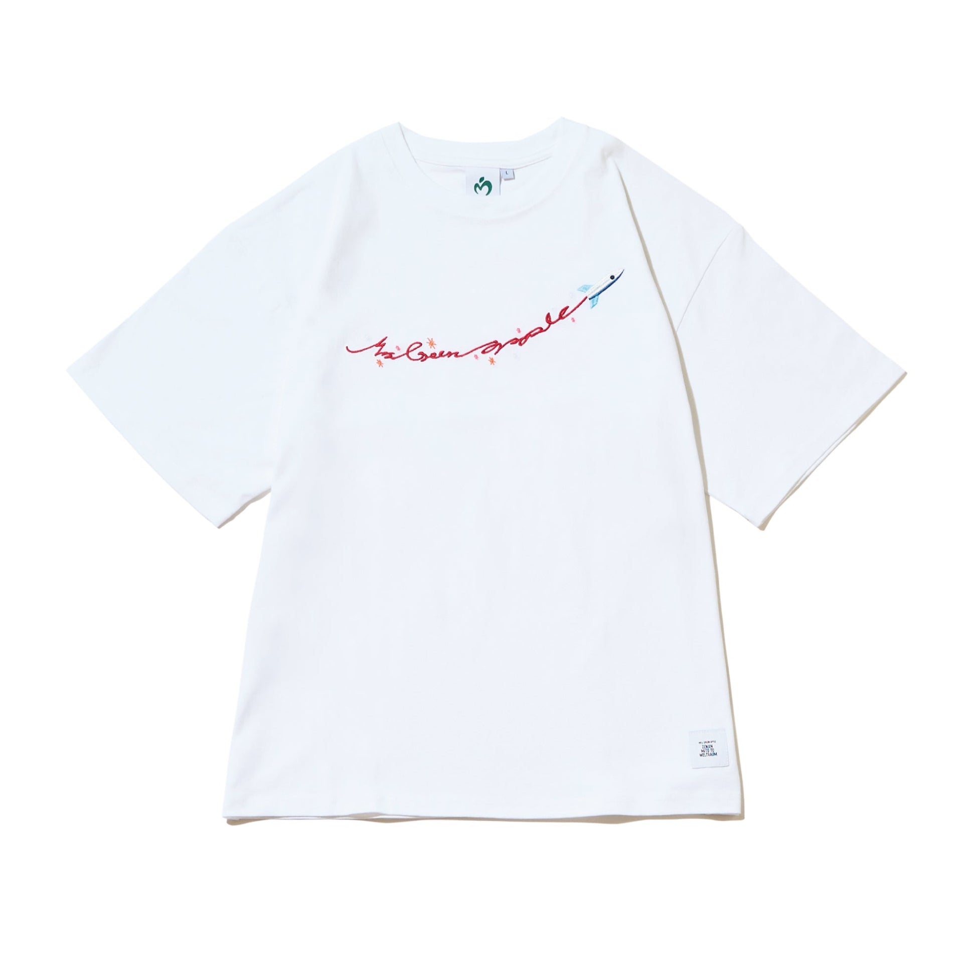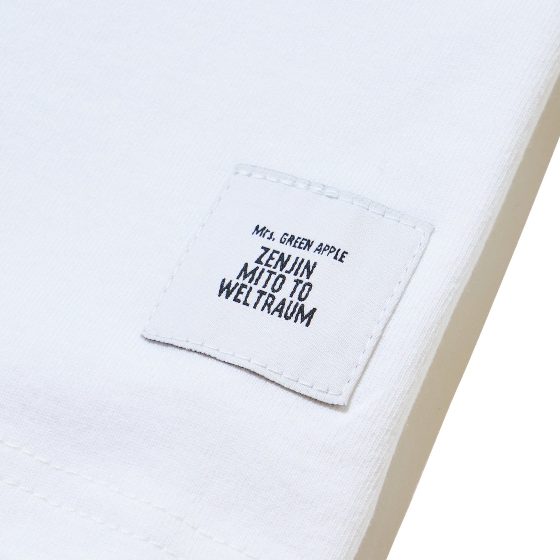 The "Mrs. GREEN APPLE" part of the white body is stiched normally.
