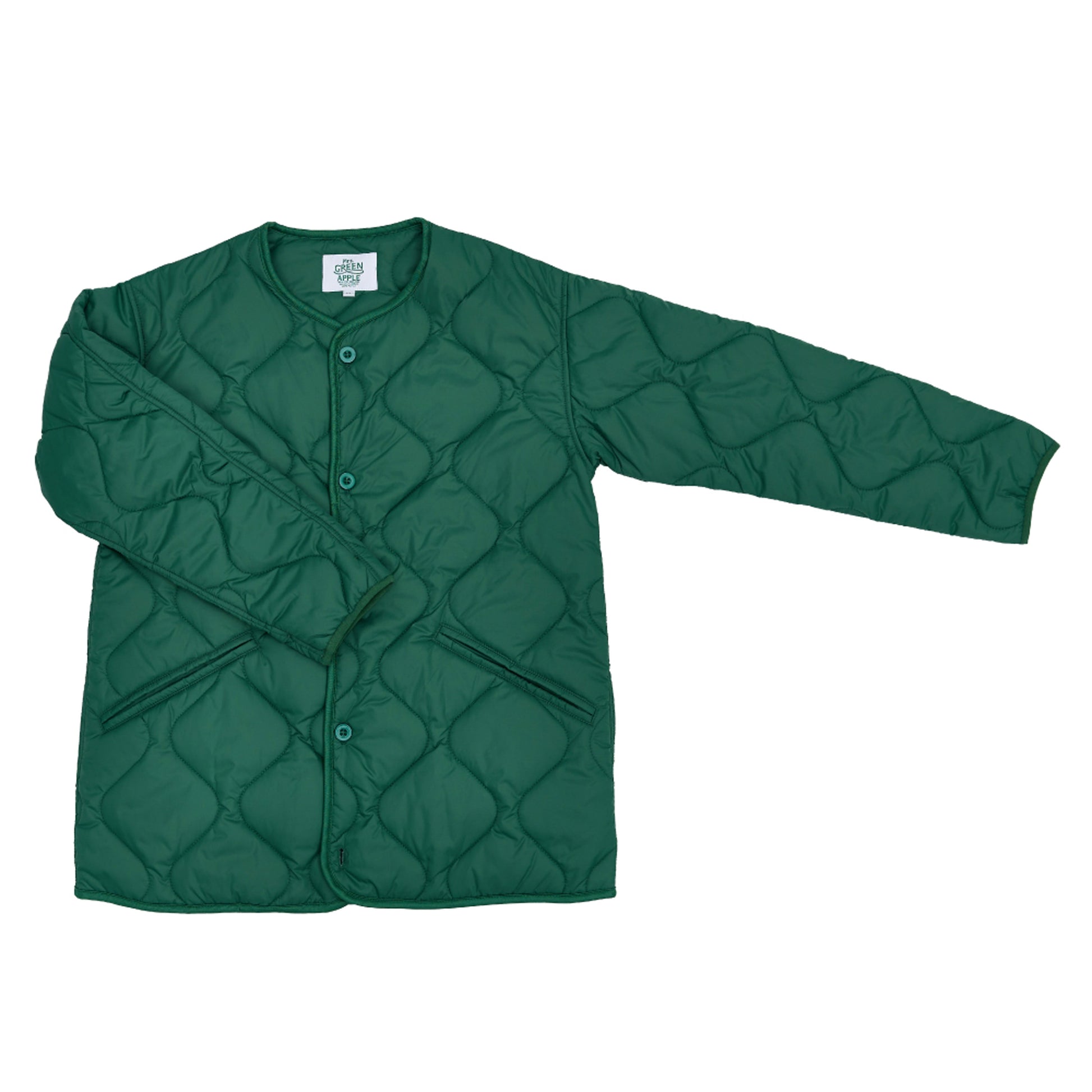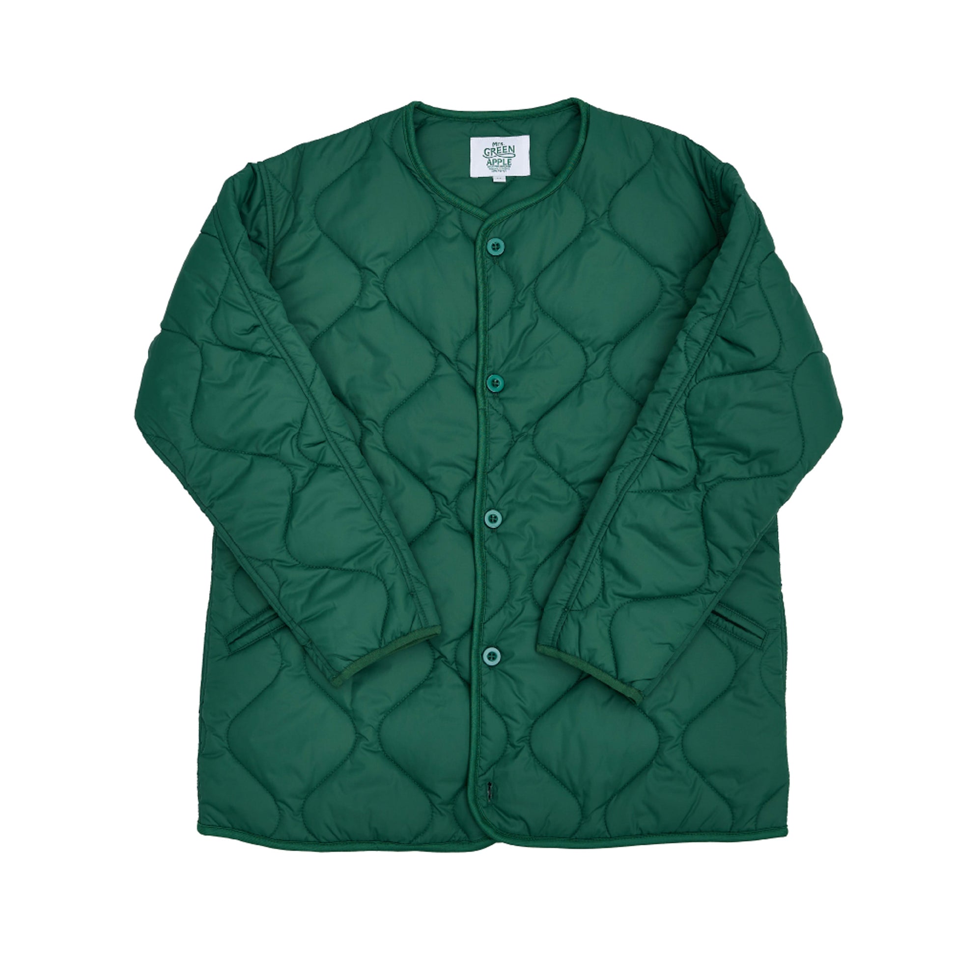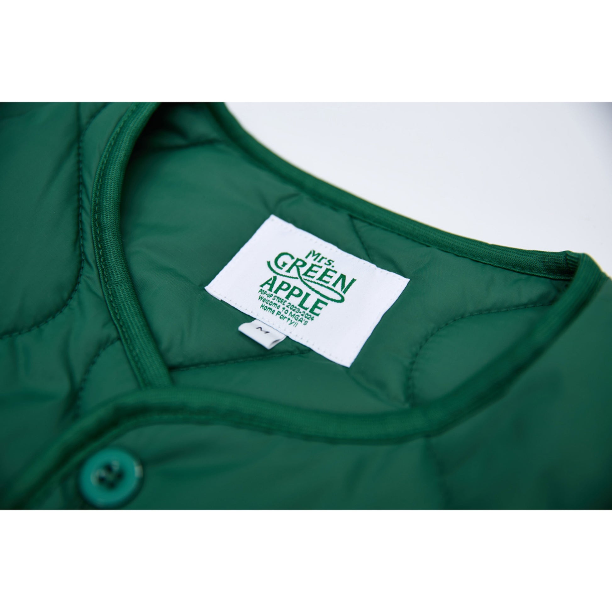 Mrs. GREEN APPLE 다운 캐주얼한 녹색 퀼팅 재킷입니다.