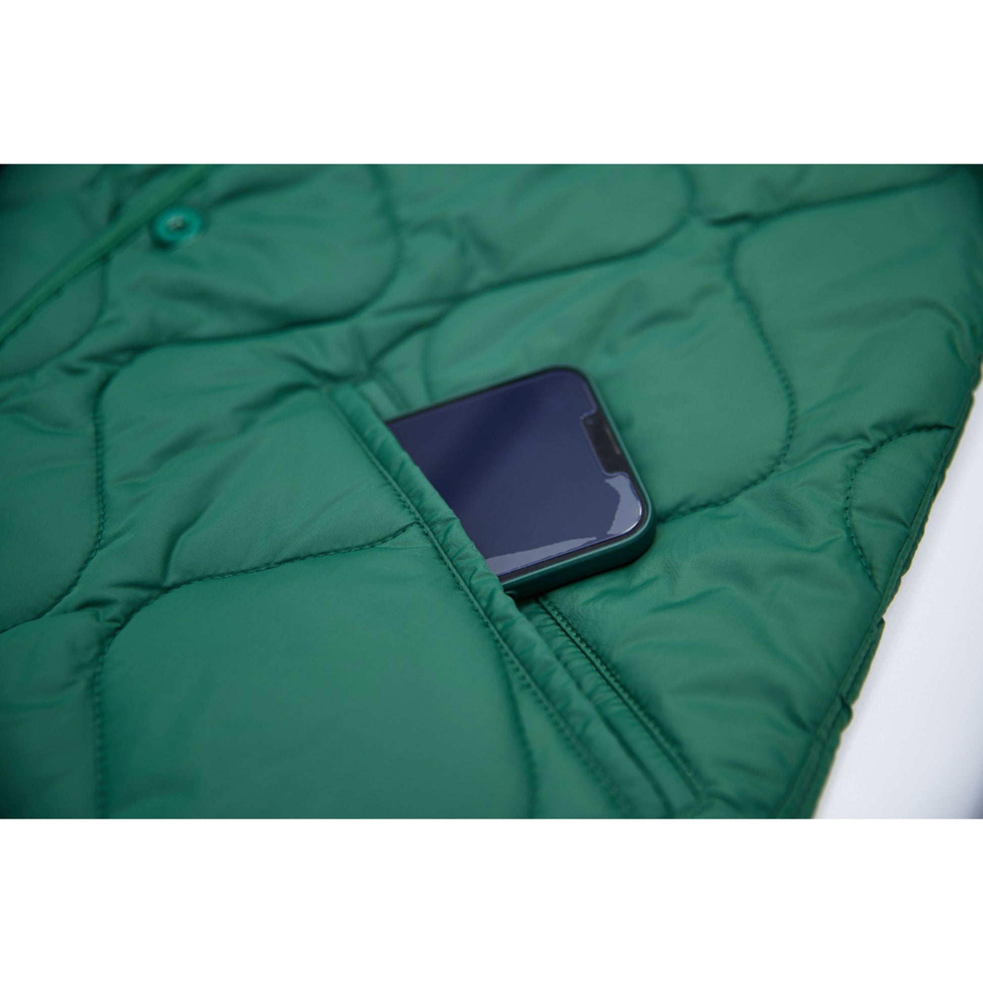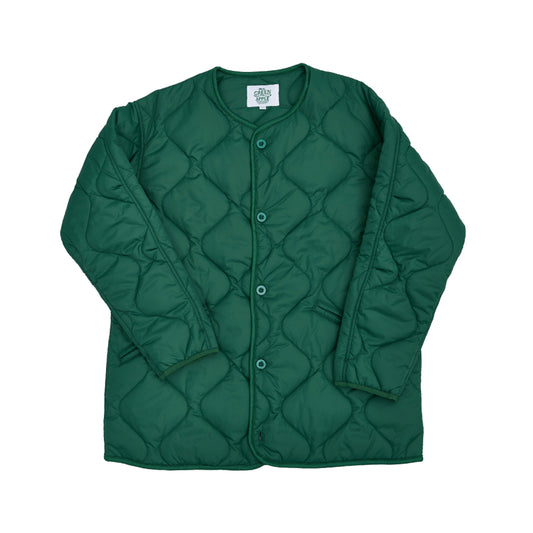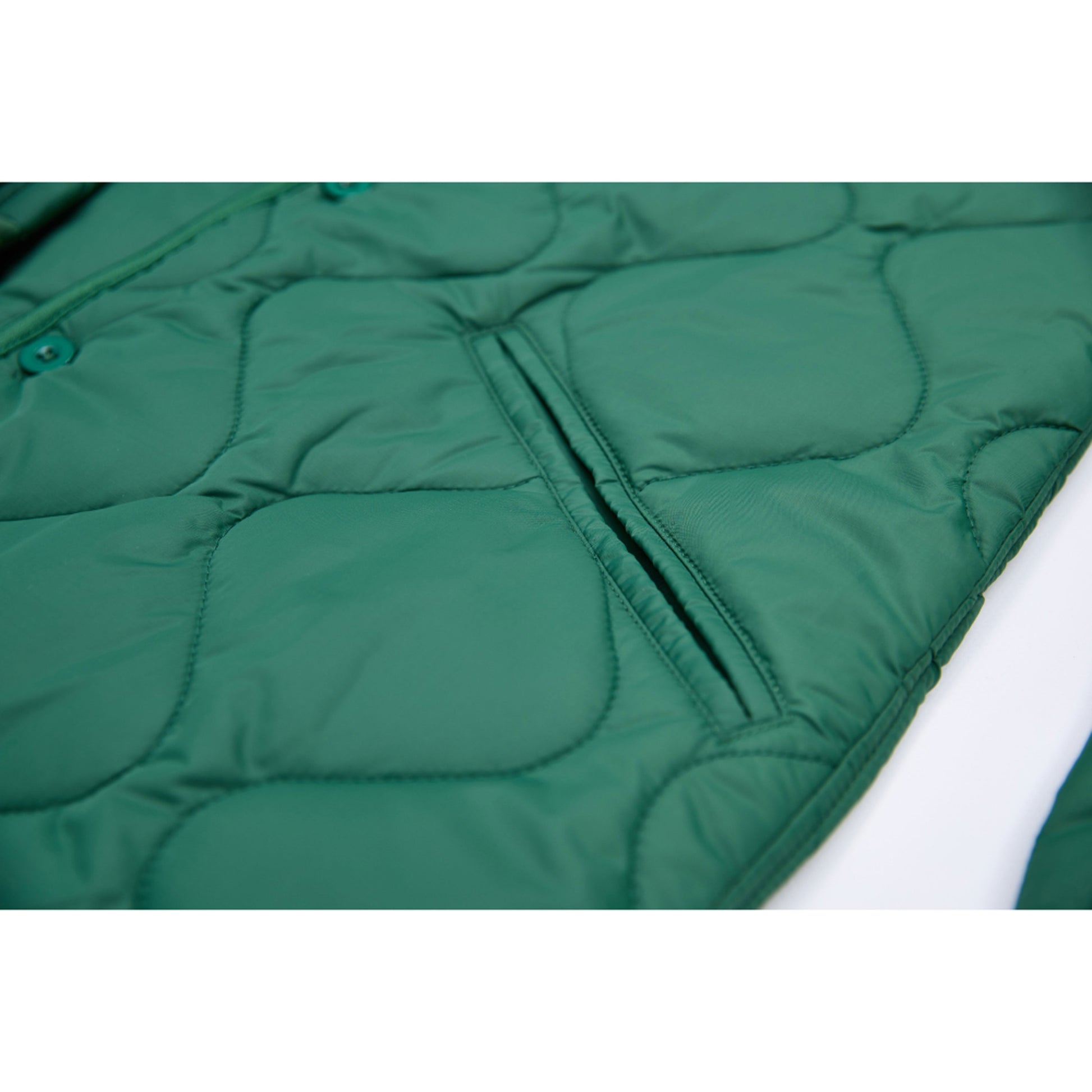 Mrs. GREEN APPLE 다운 캐주얼한 녹색 퀼팅 재킷입니다.