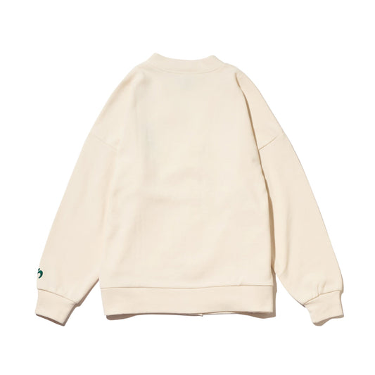 着回しやすいオフホワイト生地に、胸元にMGA、袖口にロゴマークを刺繍したシンプルなデザインです。