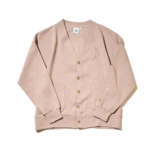 着こなしのアクセントになるグレージュ生地に、同色で胸元にMGA、袖口にロゴマークを刺繍したシンプルなデザインです。