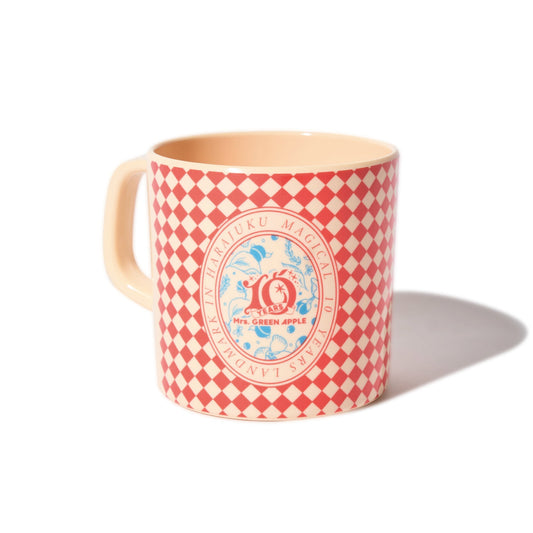 朱色の格子柄がインパクト大! LANDMARK IN HARAJUKUと10周年ロゴをあしらったマグカップです。