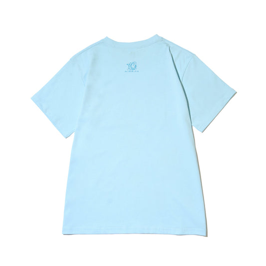 夏らしいライトブルーのボディに、立体感のあるFJORDロゴをプリントし、クリスタルのモチーフを大胆に配したTシャツです。
