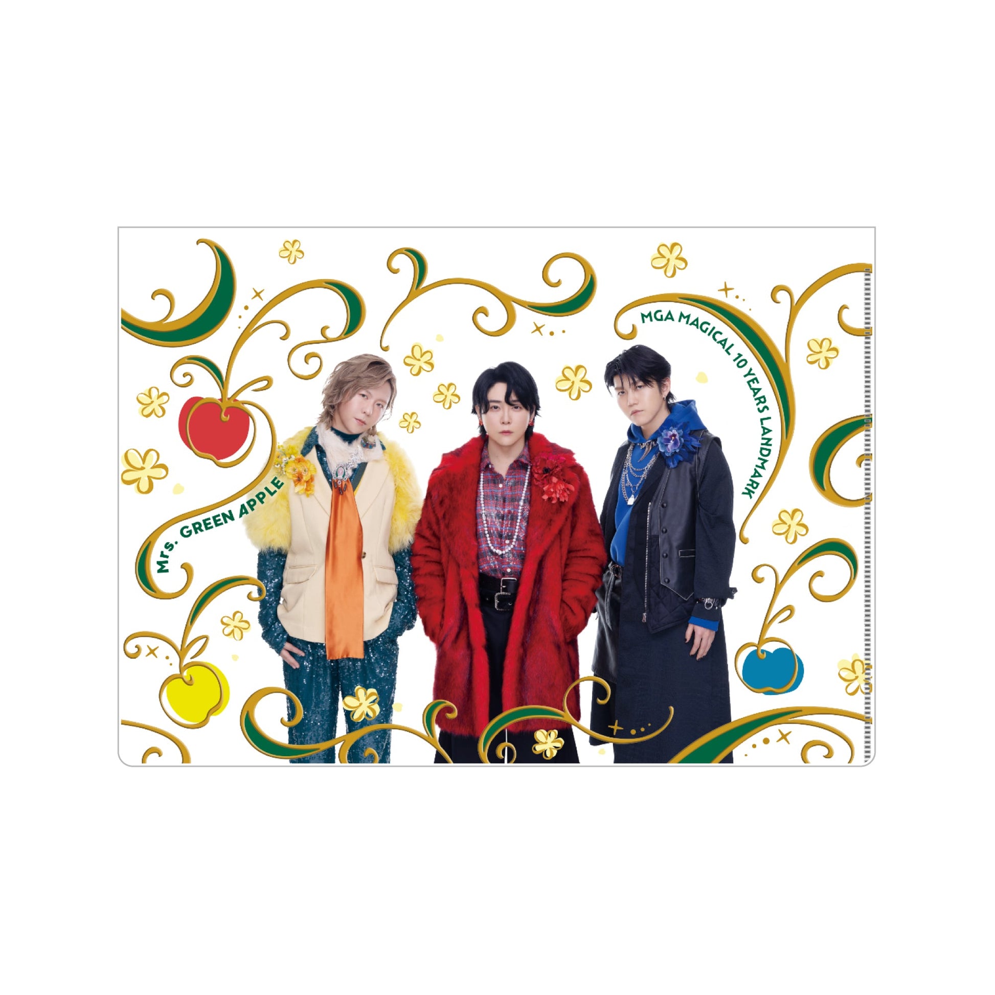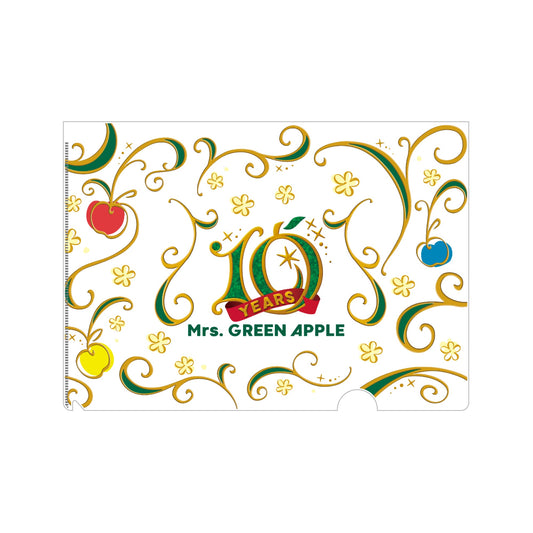 3色のりんごとお花のモチーフに、「10」コンセプトフォトをレイアウトしたアニバーサリー感満点のA4サイズのクリアファイル。