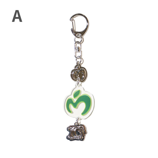 ゴールド・シルバーのカラー違いのメタルパーツと各イラストのアクリルパーツが連なったチャームタイプのキーホルダー!