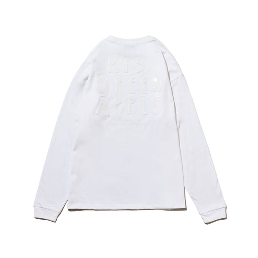 ホワイトのTPUプリントを採用し、フロントには「TWL」、バックには「Mrs. GREEN APPLE」のタイポグラフィを配したロンT。