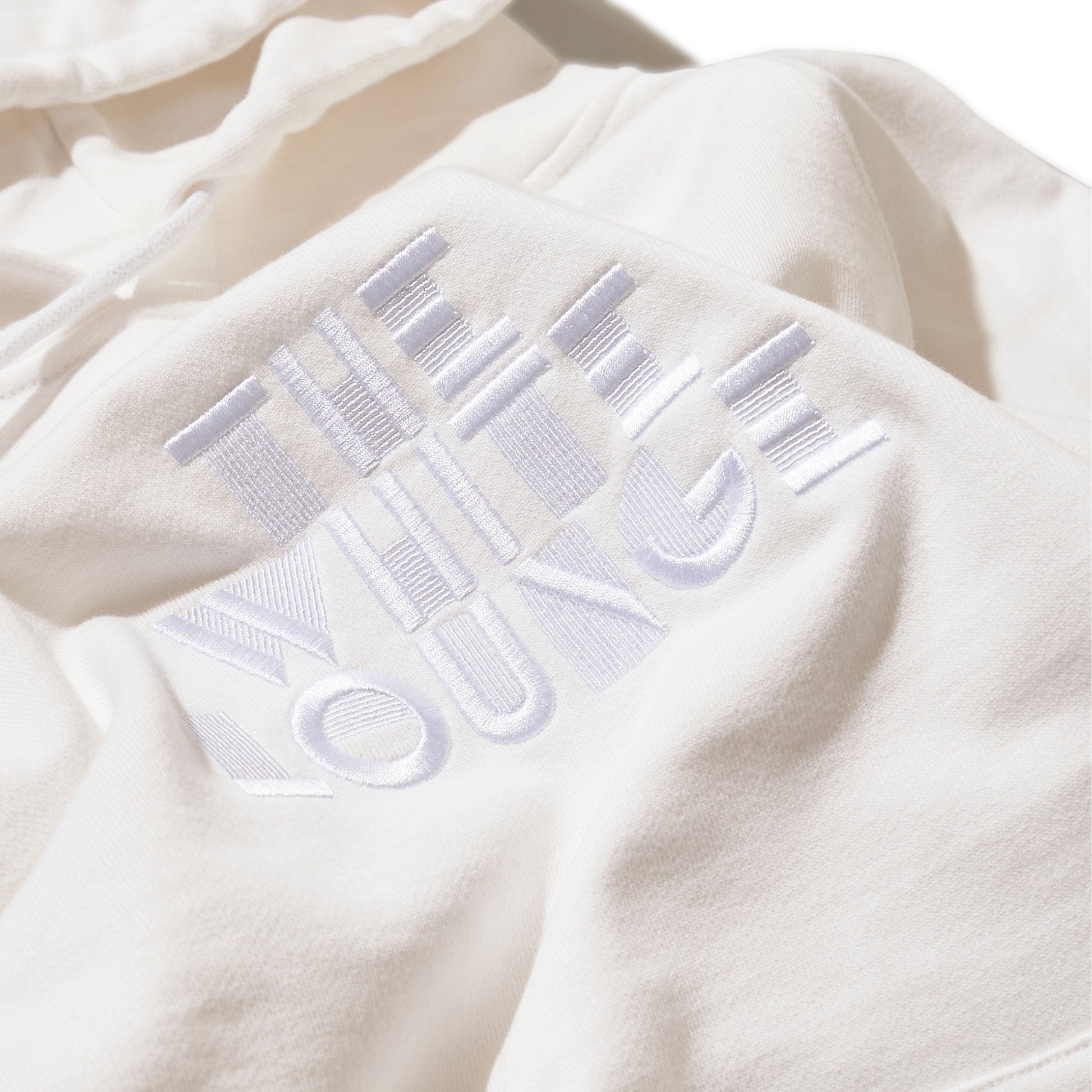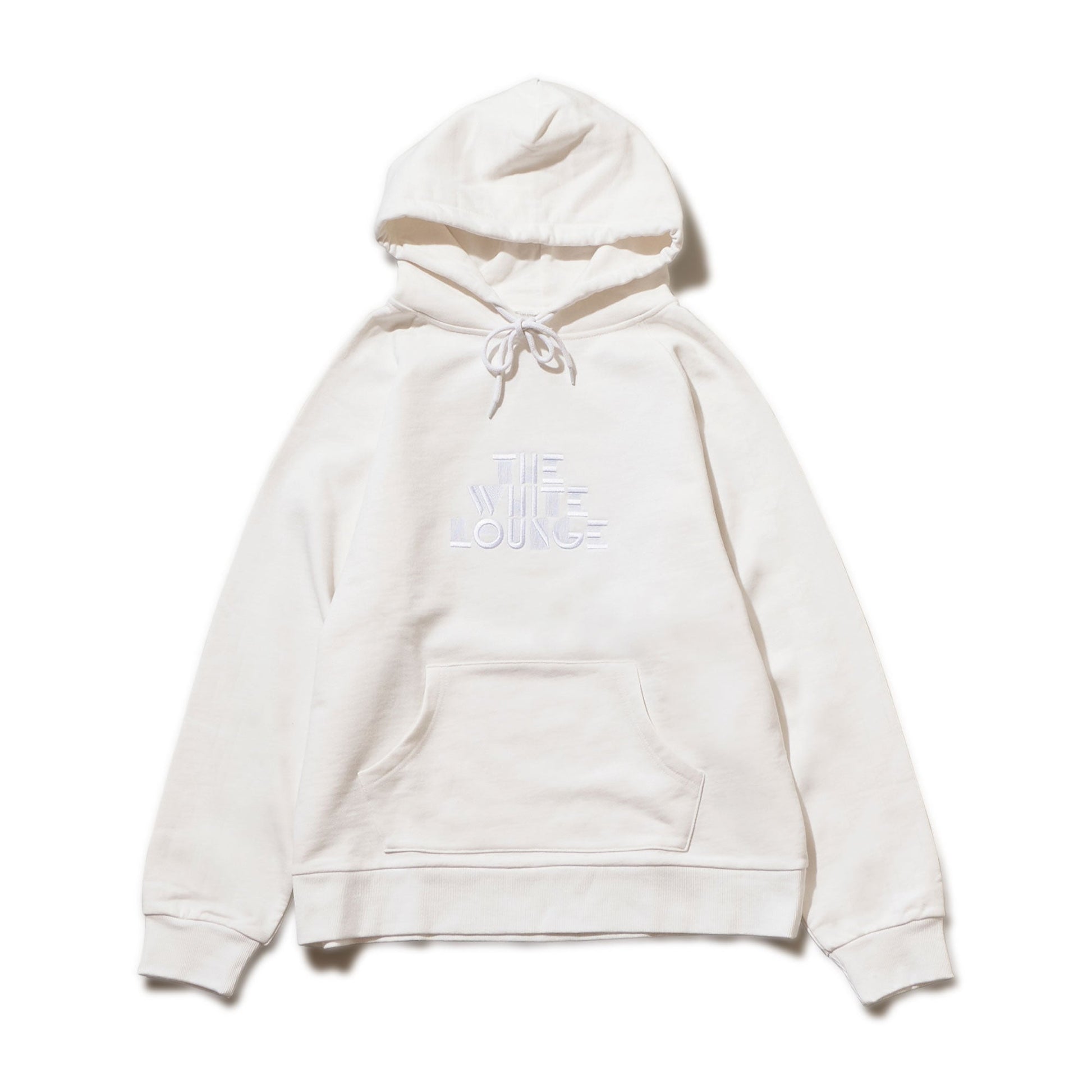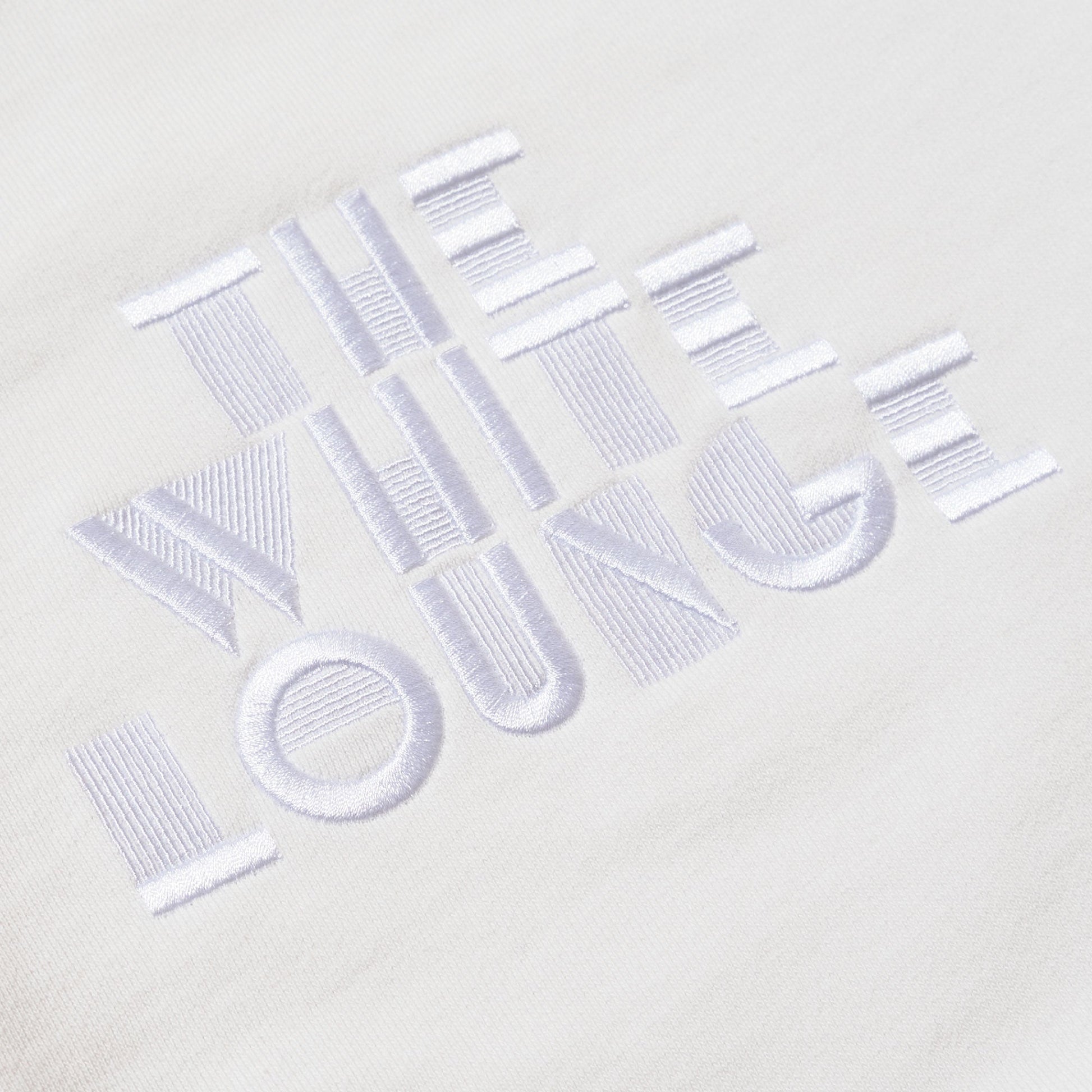 「THE WHITE LOUNGE」タイポグラフィをオフホワイトの刺繍糸で表現。