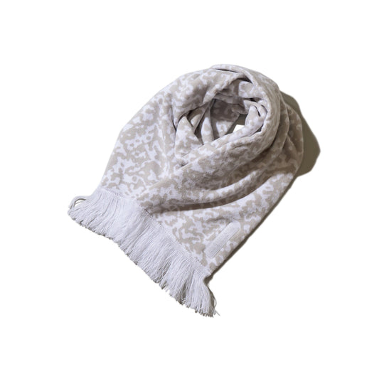 ジャガードニット織りで砂嵐のような柄を再現したマフラー。