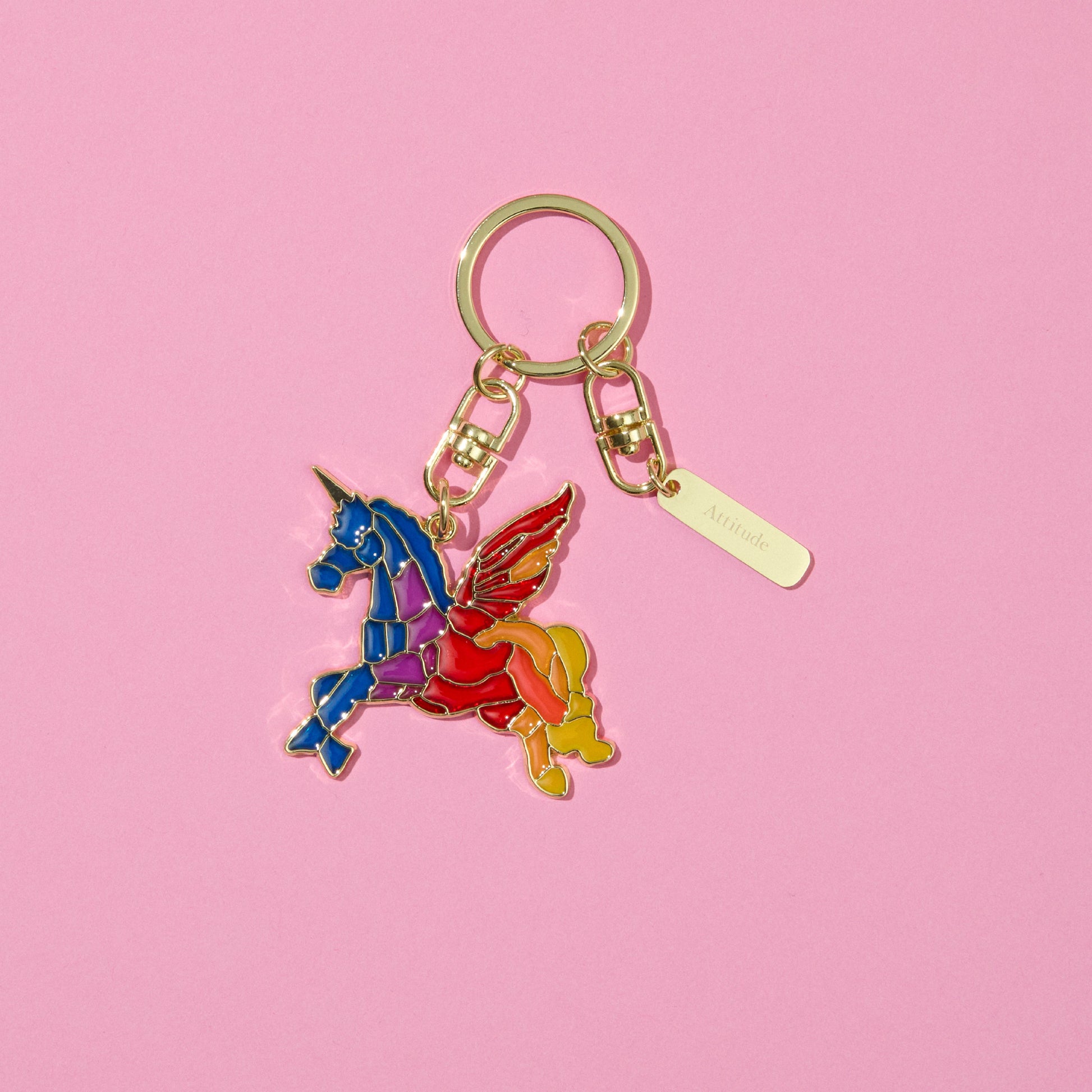 Mrs. GREEN APPLEの楽曲「Attitude」のジャケットに登場するモチーフを、ステンドグラス風に仕立てたキーホルダー。